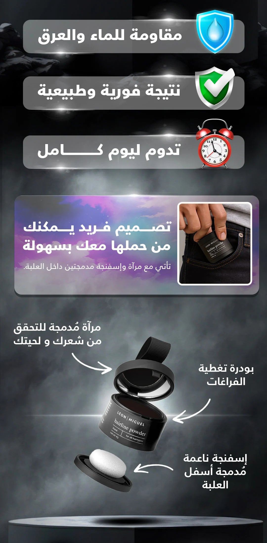 البودرة تعطيك ثبات ليوم كامل، ومقاومة للمويه والعرق، وما تروح إلا إذا غسلتها بالشامبو.